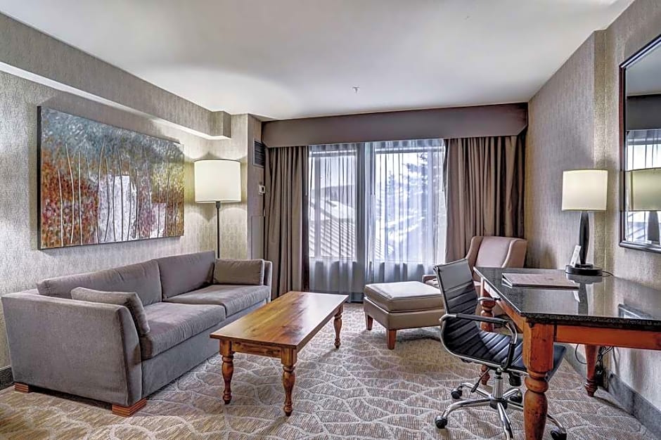 This family room features mountain views, a seating area with a flat-screen cable TV and a refrigerator. A private bathroom is also available.